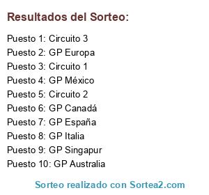 Lista de participantes: GP Australia, GP España, GP Europa, GP Canadá, GP Italia, GP Singapur, GP México, Circuito 1, Circuito 2, Circuito 3.