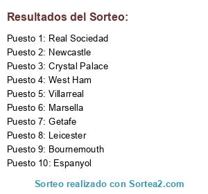 Lista de participantes: Bournemouth, Crystal Palace, Espanyol, Getafe, Leicester, Marsella, Newcastle, Real Sociedad, Villarreal, West Ham.