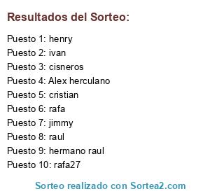 Lista de participantes: Alex herculano, Alexfdez, cristian, henry, raul, hermano raul, cisneros, ivan, rafa, rafa27, jimmy.