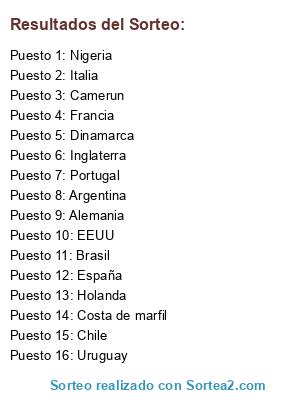 Resultados del sorteo: