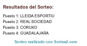 Lista de participantes: REAL SOCIEDAD, CORUXO, LLEIDA ESPORTIU, GUADALAJARA.