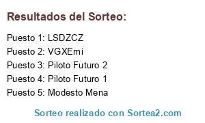 Lista de participantes: LSDZCZ, Modesto Mena, VGXEmi, Piloto Futuro 1, Piloto Futuro 2.