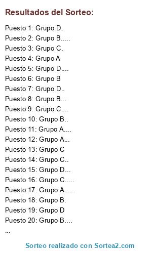 Lista de participantes: Grupo A, Grupo A., Grupo A.., Grupo A..., Grupo A...., Grupo A....., Grupo B, Grupo B., Grupo B.., Grupo B..., Grupo B...., Grupo B....., Grupo C, Grupo C., Grupo C.., Grupo C..., Grupo C...., Grupo C....., Grupo C......, Grupo D, Grupo D., Grupo D.., Grupo D..., Grupo D...., Grupo D......