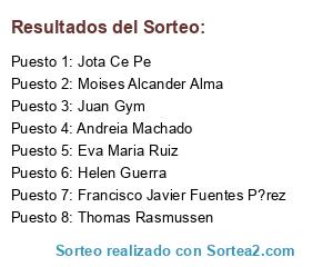 Lista de participantes: ?ngel Trujillo, Dany Serrano, David Rodriguez, Vero Marquez, Felisa Alguacil, Ivan Vega Y Punto, Sergio Pintado, Cristian Herrera, Joseba Barquin Martinez, Jose Antonio Mejias Guerrero, Fran Sanchez Valdepe?as Lopez, Dario Matilla Calle, Barbara Saiani, Javi Sanchez, Cristina Corona Lorenzo, Flor Salvador, Raul Bolivar Milena, Jose Ballesteros Diaz, Alvaro Alvarez Garcia, Edu Cebrian Hernandez, Bego?a Idigoras, Gabriel Herrera G, Pedro Martos, Javier Irigoyen, Rub?n Godoy, Sara Liquete Gonzalez, Rociio Re Lo, Luis Manuel Santoyo Moreno, Leticia James Keenan, Francisco Obtres, Sergio Febles Viso, Ana Diaz, Dan Tit?n, Sergio Jimenez Pablos, Dolores Soler Rodriguez, Ricardo Garcia Estecha, Maria Teresa Maite Hervas Pastor, Jonas Rodriguez, Ana De la Osa, Marian L?pez, Yaiza Covi, Jose Javier Nieto, Jorge Basanta Lorenzo, Enrique Calero Hernandez, Marichu Castillejo Poole, Lucy Augusto Cherto, Gaspar Esquerdo Lloret, Erika MaRey, Miriam Montaud Ordo?ez, Vanessa Rodriguez Linares, Bego?a Ateca Diaz, Tania Nielfa, Mar Longui, Jose Joseba, Koldo Aretxabala, Josika Romero Garcia, Roc?o Palacios, Conchi Saez Cuesta, Adryan Rapsoda, Sara Caro, Tory Twise, Bia Cruz, Manoli Valdes Castro, Mario Castellano Santana, May Sinmas, Ascen Vial, Gaby Alc?ntara, Ahmed Bellameche, Fernando Natividad Jimenez, Juhos Gabriel, Silvia M Alviz, Elena Christina Charlotte Weyell, Diego Len Fernandez Perez, Jesus Antonio Febreiro Garcia, Roberto Centeno, Ivan Portillo Zapata, Miguel Blanco Perales, Chicky Maque Ap, Patricia Jim?nez, Oriol LV, Sergio Serg, Stefan Goodman, Esperanza Merino, Yeray Ma?as Hernandez, Julio Hernandez, Jose Luis Correa Moreno, Gerard Torres Polo, Juan Conmiedo, Juan Verde Mu?oz, Estela Dediego, Lucia Cubero Sanchis, Estefania Roman Barbero, Jose Maceiras Fernandez, Paola Andrea Quintero Ramirez, Nuri Nurita, Juan Pablo Sanchez Nu?ez, Isaac Hernandez Mayor, Jhonson Smith Ato Cervantes, Encarna Buendia, Joana VS, Mario Fernandez Murcia, Alejandro Rodriguez Rodriguez, Sandy Martinez Salzmann, Noelia Perez Ruiz, Mariana Sanchez Garcia, Lidia Fernandez Gonzalez, Christian Monge Perez, Pablo Montez Rojas, Carlos Molina, Eugenio Milovanov, Paula CMera, Francisco Conejo Martinez, Laura Palmer, Martuk Leo, Sigilli Luciano Gabino Sigilliwindplanet, Jorge Recio, Yolanda Ramirez, Mari Angeles Galvan Trigueros, Afri GJ, Daniel Guare?o Garcia, Kevin Asekas, Jhony Ace, Miguel S?nchez, Juan Santiago L?pez Fern?ndez, Jon Aramburu Gonzalez, Sory Delgado, Carlos P?rez, David Del Pozo Sanchez, M?nica Valdivielso Sagredo, Nando Garc?a Mu?oz, Ivan Sanchez Arroyo, Perro Ladrador Poco Mordedor, Miguel Barron Sanz, Loren Cano Soler, Paco Al Mo, Pe Monyka, Miguel Gonz?lez, Pablito P?rez P?rez, Modesty Blaise, Ce Li A, Soraya Pedrosa, Jesus Osa Bujeiro, Dani Castan, Cristopher Oran Casta?eda, Daniel Mart?n Valles, Ainhoa Teixeira Freire, Sergio Gallardo Buenestado, Jose Luengo Estar, Laura RG, Cristina Diez, Nancy Burciaga, Lucia Diaz Albacete, Vane Onfire, Bruna BM, Jose Manuel Sobrao Jim?nez, Santi Ferrer Granell, Ana Alvarez Domenech, Juan Jos? Gallego S?nchez, Emanuel Ponsanesi, Victor Bermudez Alandete, Paola Rueda, Jose Villalonga, Ruben Navarro Santigo, Susanna Corral, Conso Castillejo, Bogdan Sapariuc, Pantoja Gomez Darling, Zeniforeverlove Prieto Perez, Raquel Ponce, Patricia L?pez, Loli Quirant, Sergio Cruz L?pez Cano, C?bal Amarth, David Galdran Alvarez, Javier Rodriguez Garc?a, Abian Cillo, Gema Fernandez Berbel, Bana Pena V?zquez, Amanda Pi?an Gonzalez, Lau Ri, Jose Aguilar, Borja Silva, Jonathan Montero, Carlos Malla, Ja Dc, El Guti, Jon Cassanova, Arancha Jare?o, Ruben Salgado Peral, Y?sica Sabina Campos, Cristina Gonzalez D?az, Fran Anton Moreno, Sandra Martinez-abarca Lopez, Sim?n Barrera Per?z, Eva Verdegay Parra, Ferran Diaz Jubells, Markos Font Vazquez, Borja Garc?a del Cerro, Helena Canovas, Hicham Reinaldo, Juan Fernandez, Vane Vazquez, Alejandro Garcia, Andreu Tom?s, Arlena Fabian, Marc Font Rodeja, Ambrosio Sanchez, Cristina Fernandez, Sergio Piedra, Kattia Brenes Mora, Ester Sevilla, Covadonga Suarez Martinez, Pablo Ortiz Mendoza, Mayte Ferreres Valles, Maria Fernandez Gonzalez, Natalia PM, Tamara Vidal Tercero, Marc Mu?oz Escudero, Roberon RC, Miguel Anguel Cuesta Ramos, Paulo Coehlo, Juanjo Macias, Tania Gil, Jesus Lara Ranea, Emilio Vitar Mu?oz, Pedro Antonio Arranz Arraz, Marta Ballesteros, Roberto Rodriguez, Angeluky Carner, Mar?a P?rez, Tamy Prado, Guillermo Prieto Heres, Juan Sykes, Maximo-rendimiento Maximo-rendimiento, Montserrat Gironell Pag?s, Anna Calder?n, Miguel Angel Lopez Perez, Ignacio Jose Mateos Fernandez, Marta Auriga, Juan Manuel M??ez Alarc?n, Malina VL, Cristina Lumbreras Freire, Jesus Soto Granados, Anyi Espinosa Calca?o, Dario Lopez Martin, Andres I?o Seki, Lucia Ruiz Trujillo, Pablo Sanchez, Alejandro Corona Cobacho, Angel RG, Francisco Javier Delgado Millan, Alejandro Serralvo Santana, Alvaro Navas, Oswaldo Pamplona, Maria Tomas, Raul Due?as Delgado, Sylvie P?, Isaac Barriocanal P?rez, Luis Carrera Moya, Bego Llamas, Paloma McCarrtey, David Gomez Gomez, Joel Costa, Tess ML, Valeria Perez, Antonio Jose Amat Lopez, Vanessa Moya Mu?oz, Ana Del Amo Tovar, Christian Vasco Pereira, Gonzalo Gallego Candel, Reyes Segura, Sergi Garcia Gatxi, Paqui Mu?oz de Le?n, Victoria Pastrana, Olimpia Atanasof, Ze Roberto Montero Perz, Mario De Juan Marco, Ur Jara, Manuel Mar?a Macedo N??ez, Jose Miguel Garcia Clares, Ale Jaime Llamas, Mari Carmen, Tom Martin, Sonia Laviana, Mar?a Mercedes Cividanes Vicente, Samir Sbira, Pablo Fitt, David Rodr?guez Gomez, Sonia Martinez Gomez, Deboh Lapuente Garcia, Jorge Carbajo Perez, Marc Torres Bellafont, Raul Saez, Zaid Ntifi Safsaf, Ascy Villa, Luis Garc?a Gil, Agabe GB, Luis Miguel Zambrano Bracamonte, Laura Goal, Esther Pomar Pi?a, Ana Del Amo Garnes, Cristina Nikita, Alvaro Rey Pasandin, Ingrid GA, Mamen Perez Lopez, Ruben Bendita Locura, Alba Vila Suarez, Daviddavid David David, Chedey Hernandez, In?s Garc?a Garc?a, Mar?a 