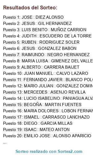 - Puesto 11: FERNANDO JAVIER BLANCO POLO