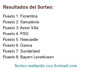 Lista de participantes: PSG, Aston Villa, Genoa, Bayern Leverkusen, Sunderland, Fiorentina, Sampdoria, Newcastle.
