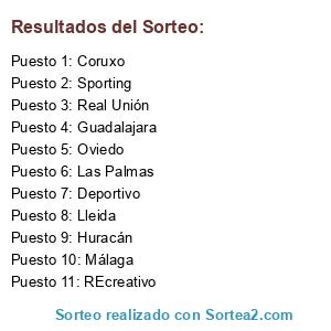 Lista de participantes: Sporting, Málaga, Oviedo, Las Palmas, REcreativo, Lleida, Coruxo, Deportivo, Huracán, Guadalajara, Real Unión.