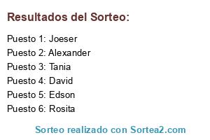 Lista de participantes: Joeser, Edson, Rosita, Tania, David, Alexander.