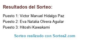 Lista de participantes: Hitoshi Kawakami, Eva Natalia Olvera Aguilar, Eva Natalia Olvera Aguilar, Hitoshi Kawakami, Hitoshi Kawakami, Eva Natalia Olvera Aguilar, Hitoshi Kawakami, Eva Natalia Olvera Aguilar, Amparo Espinoza, Hitoshi Kawakami, Alejandro Figueroa Espinoza, Sergio Díaz Ortuño, Sergio Díaz Ortuño, Hitoshi Kawakami, Hitoshi Kawakami, Eva Aguilar Meneses, Amparo Espinoza, Victor Manuel Hidalgo Paz, Eva Aguilar Meneses, Hitoshi Kawakami, Victor Manuel Hidalgo Paz, Eva Aguilar Meneses, Hitoshi Kawakami, Hitoshi Kawakami, Alejandro Figueroa Espinoza, Hitoshi Kawakami.