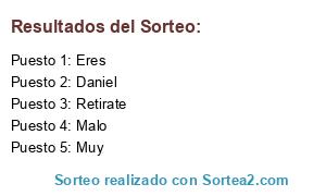 Lista de participantes: Daniel, Eres, Muy, Malo, Retirate.