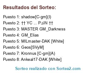 Lista de participantes: MASTER GM_Darkness, Geos[SVyM], GM_Elias, MILmaster-DAK [White], Ankeal17-DAK [White], Kronnus [C-gm](A), shadow[C-gm](I), †† YC ... P∆IN ††.