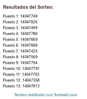 Este sorteo ha sido certificado por Sortea2. Sortea2 garantiza que: