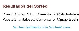 Lista de participantes: Sorteo realizado entre 104 comentarios.