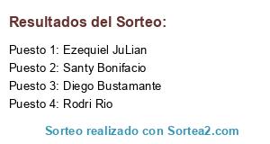 Lista de participantes: Rodri Rio, Santy Bonifacio, Diego Bustamante, Ezequiel JuLian.