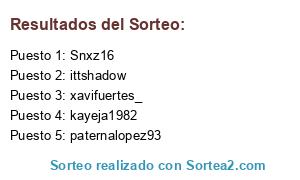Lista de participantes: joker_el, Roger21082144, saracrescam, gemelascc, Sunflow08908134, Andr58192547, FnKeix, AdrianB99730438, alvaro_paricioc, Rise57, alorenzuelo, Beatrizgon00, Bmkiliann, yeldrab0210, by_shiiro, Jimmy_Aut, Lv12Andres, Rivaldo31830453, perxitaawey, AdriiuX_, 14_temi, YoutubeSalna, DanielG74012526, ARNALDOWTF, amazing_ro, Gober59406696, AarnRaya1, jnddaeng, HolaSoyIsaac9, DRULEX_YT, Mario91952768, TheMorty12, fluyd1, Rasho30574939, wayqi1, ManuelSfC97, Gh0stR2L2, Tammy_ATM20, dinaitzel036, AplastaLawyer, aguilera993, Manu80966415, Grxxzy, Marcos58469849, Fernandoloz9, EFREN5634310, MikelRomero9, SportsRival1, AlexLop41397521, xavifuertes_, JorgezZ_, AntonioelbroY, HypeAnto1308, Fl4v102, JoaquinSainz3, Andyfiol2, gardoniz, LittleRagerLol, Ositah_Rara, Juanmita212, Its_Davef, Sergio31666914, cybermondi, Byamiinxito, Snxz16, josevallecama43, F14v102, Pedroj21121, Anibal0213, fon_rea04, curtuayt, Juanlu_ofi, mohamed90282356, Lucaas_lopez04, MatGame23888475, AndreuContrera, davicin_02, stkkangosto, juankarpenter51, Jheynader12, JuanMerino1, larogr1, Jaime90972921, correjouh, madega10, Thomas45713704, CurroCruz2, RodriiFN_, CeliaRocas, elrig8, davidcojio22, TWOMario4, jovi11jp, 11Nuricn, muel_carlos, Cinidavi02, DavidGimenezSa1, Cristia68713793, danteertewrwr, Tlitbasky, AlepgE, jaime33334, Alain90017275, DanielPerez1704, MarcLuna06, alicititat, miquepiz, gaspi49381922, SergioPady23, Xabier3132, Blacksystem92, aalbeertoo, 4dri_1996, alearob, ElGranD_YT, Hugojm12, juanpe5178dro, byprophus, David84017128, teamcontinental, cax0311, CarlosDevilnass, Vuhv69101539, RogerTa25010995, Pachecogames1, Marc88987470, Crossmen17, XzLaa, Confu_Confusion, Jeanlwnl, MegaSimoon, javierbc67, AimiFN, brayanchavez159, true_mondongo, JJ9Herranz, mochitomix, luisma_123, TBonny92, prubiop, Cucurucho763, teresillat, raquelfontan01, fisio_22, carla_yf, chay_enrique, Juanfrael7, rafasanemeterio, CarlosUnDosTres, fefaol1, xaabigomez_, cloefa76, mipami74, cosalindatuya, blanxaeffac, Pedrolora11, james112002, david22204, Nety90718528, mitanisv, laurayjimena, nilsoon100, meparto_to, StrOrtiz, Mariacasas332, Juan86910027, Inkling23482977, gasca_nuria, paternalopez93, AlexMui7, Antonio_G_N_, Elbarba972, kayeja1982, NotCrisRam, Fernand49568015, LaraSa89795403, Maticalbo07, josecm_962011, ArauzoVal, Lauramv02, VictoBeneit, MarioDzn, larita51490651, ittshadow, MeleroJR, Javilu95, joseleter1, djzd0041, Juan1995Orts, Diegogu07898324, Lucas97582741, 819Chavi, YahirGP6, RobertA16012659, JemapelleMidori, seoand97, xkazfn, winwinxu, iisabela_26, Sergio_dealba, Jaime89134953, josetote69, davidjaf76, yessidas, SONIANAVARRO11, bossxIIII3, Jimmy_Rix6, Jaime0698, MrEmanen, crisgala77, imperiuum1, FrankyCm18, itsrubdav2, aarferlo14, sarahgarcia2012, OctavioJGon, AndreaRZ_09, ARivero0, RaseroAngel, Jr10btw, Joseprazole, Josy_EGS, eedgar7110, Agui0333, PomarPia, gamerfin1, shiroch23082947, Andreanenena, seeergiogil, Er_Trapy, MAMA_VASCA, Carlota_Camazon, iruretagyena, KaryckoNee, maribelbel121, Siltors, Official_YiqiZS, DavidTR04, FranRonoaX, Bfallforyou, DezciaDc, BlackPantherBye.