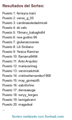 Lista de participantes: Tamii Carreño, Anto Arquibio, Anto Arquibio, Lili Siciliano, Anto Arquibio, Anto Arquibio, Lili Siciliano, Yesica Ramirez, Carmen Garcia, Marga Caceres, Kaktus Kaure, Kaktus Kaure, millydiaz18, vicosoledad, chichoromero1985, cristinahernandez1908, misdeliriosreciclados, derosaeuge, vane.bonetto.9, ferreyra.marii, ferreyra.marii, aymiiss025, ferreyra.marii, ailenolivaok, noe.gudino.96, agusgoro3, noe.gudino.96, virbaita, anto.teo, ferreyra.marii, aymiiss025, aymiiss025, ailenolivaok, veroo_g_05, derosaeuge, miliayrala, leguizamoyamila, carolinasoledadmiceli, vane.bonetto.9, juliamaral97, andresosa14, vane.bonetto.9, natalia_gaita, 19maru_babaglio84, ferreyra.marii, ferreyra.marii, natalia_gaita, flaviama9484, valemontero8, giulianacoceres, giulianacoceres, giulianacoceres, leguizamoyamila, carolinasoledadmiceli, giulianacoceres, giulianacoceres, giulianacoceres, andresosa14, veronicalutriok, cristinahernandez1908, abigaill_gutierrez, ferreyra.marii, gorocitovaleria, romy_quiroga, andresosa14, andresosa14, giulianacoceres, andresosa14, aymiiss025, andresosa14, valemontero8, tamisilva21, noeliaromero5182, agusgoro3, mariacarinag, mariacarinag, mariacarinag, mariacarinag, carolinasoledadmiceli, carolinasoledadmiceli, carolinasoledadmiceli, carolinasoledadmiceli, abigaill_gutierrez, 19maru_babaglio84, 19maru_babaglio84, 19maru_babaglio84, 19maru_babaglio84, 19maru_babaglio84, etelvinalujandiaz, stfaniiaaa, vikymalin, vikymalin, vikymalin, vikymalin, castillo4803, gorocitovaleria, gorocitovaleria, gorocitovaleria, may_gomez45, tamisilva21, tamisilva21, tamisilva21, anto.teo, anto.teo, veroo_g_05, veroo_g_05, veroo_g_05, natura_perezm_ramallo_snicolas, natura_perezm_ramallo_snicolas, natura_perezm_ramallo_snicolas, natura_perezm_ramallo_snicolas, soryy_borges, soryy_borges, magadsal, magadsal, valemontero8, miliayrala, mariacarinag, mariacarinag, mariacarinag, gorositoflopy, silmacha2, silmacha2, silmacha2, tai_y_felix, tai_y_felix, tai_y_felix, virbaita, _lea_garcia_2014, eli.velo, eli.velo, tamigalvann, tamigalvann, tamigalvann, noeliaromero5182, noefurlan, noefurlan, noefurlan, sabriforlino, castillo4803, sabriforlino, sabriforlino, sabriforlino, karenn_reynoso, karenn_reynoso, karenn_reynoso, ariana_gonzalo, ariana_gonzalo, ariana_gonzalo, ariana_gonzalo, ariana_gonzalo, ariana_gonzalo, ariana_gonzalo, rooxiomii, fabianastasio72, fabianastasio72, fabianastasio72, fabianastasio72, romy_quiroga, ivana_lujan_ruiz, ivana_lujan_ruiz, agusgoro3, natalia_gaita, mairaprat, veronicalutriok, abigaill_gutierrez, chichoromero1985.