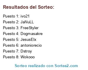 Lista de participantes: Dstroy, Wokooo, FreeStyler, ivo21, JaNuLL, antoniorecio, JesusElx, Dogmasakre.