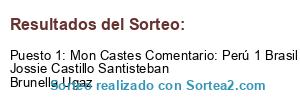 - Ganador: Mon Castes Comentario: Perú 1 Brasil 3 Jossie Castillo Santisteban Brunella Ugaz