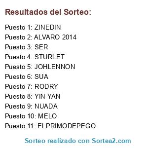 Lista de participantes: RODRY, JOHLENNON, ELPRIMODEPEGO, ZINEDIN, MELO, NUADA, YIN YAN, SER, SUA, ALVARO 2014, STURLET.