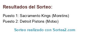 Lista de participantes: Detroit Pistons (Motxo), Sacramento Kings (Moretins).