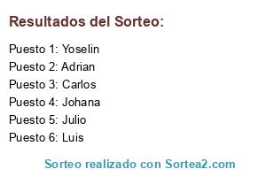 Lista de participantes: Adrian, Julio, Yoselin, Johana, Carlos, Luis.