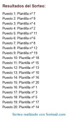 Lista de participantes: Plantilla nº 1, Plantilla nº 2, Plantilla nº 3, Plantilla nº 4, Plantilla nº 5, Plantilla nº 6, Plantilla nº 7, Plantilla nº 8, Plantilla nº 9, Plantilla nº 10, Plantilla nº 11, Plantilla nº 12, Plantilla nº 13, Plantilla nº 14, Plantilla nº 15, Plantilla nº 16, Plantilla nº 17, Plantilla nº 18, Plantilla nº 19, Plantilla nº 20.