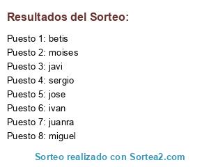 Lista de participantes: ivan, sergio, moises, betis, javi, juanra, miguel, jose.