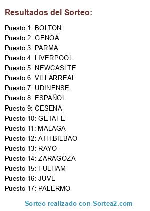 Lista de participantes: MALAGA, VILLARREAL, OSASUNA, SUNDERLAND, FULHAM, NEWCASLTE, RAYO, ZARAGOZA, ATH.BILBAO, ROMA, GENOA, UDINENSE, ESPAÑOL, SIENA, PALERMO, BOLTON, CHIEVO, GRANADA, GETAFE, LIVERPOOL, CESENA, PARMA, JUVE, BETIS, TOTTEHAM.