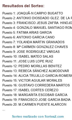 Este sorteo ha sido certificado por Sortea2. Sortea2 garantiza que: