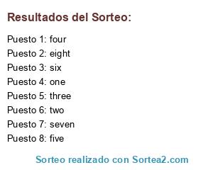 Lista de participantes: one, two, three, four, five, six, seven, eight.