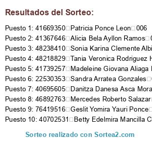 Resultados del sorteo: