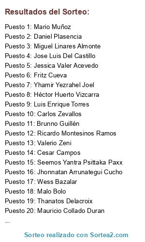 Resultados del sorteo: