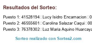 - Puesto 1: 41528194 Lucy Isidro Encarnacion 010