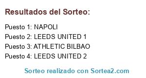 Lista de participantes: ATHLETIC BILBAO, NAPOLI, LEEDS UNITED 1, LEEDS UNITED 2.