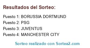 Lista de participantes: JUVENTUS, BORUSSIA DORTMUND, MANCHESTER CITY, PSG.