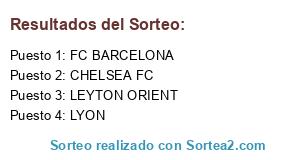Lista de participantes: FC BARCELONA, CHELSEA FC, LEYTON ORIENT, LYON.