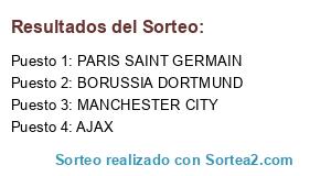 Lista de participantes: MANCHESTER CITY, PARIS SAINT GERMAIN, AJAX, BORUSSIA DORTMUND.