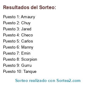 Lista de participantes: Amaury, Manny, Emin, Gurru, Jared, Chuy, Checo, Scorpion, Carlos, Tanque.