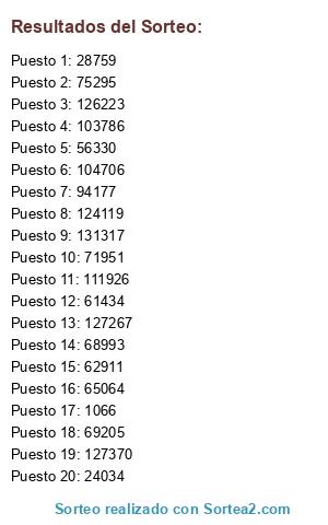 Resultados del sorteo: