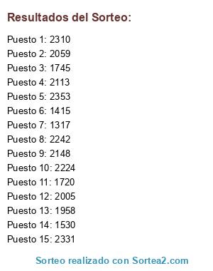 Lista de participantes: 2353 , 2331 , 2310 , 2242 , 2224 , 2148 , 2113 , 2059 , 2005 , 1958 , 1745 , 1720 , 1530 , 1415 , 1317.