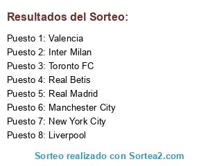 Lista de participantes: Real Betis, Toronto FC, Real Madrid, New York City, Valencia, Manchester City, Liverpool, Inter Milan.