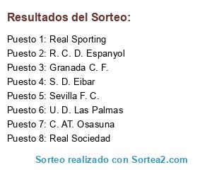 Lista de participantes: S. D. Eibar, U. D. Las Palmas, Real Sporting, C. AT. Osasuna, R. C. D. Espanyol, Real Sociedad, Sevilla F. C., Granada C. F..