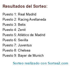 Resultados del sorteo: