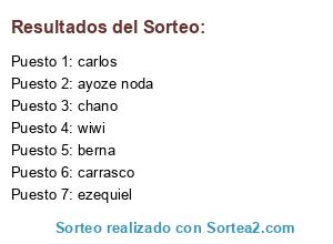 Lista de participantes: berna, chano, wiwi, carrasco, carlos, ezequiel, ayoze noda.