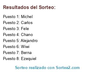 Lista de participantes: Michel, Alejandro, Berna, Chano, Ezequiel, Fele, Carlos, Wiwi.