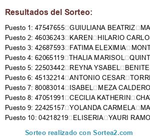 Resultados del sorteo: