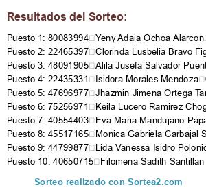 Resultados del sorteo: