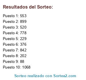 Resultados del sorteo: