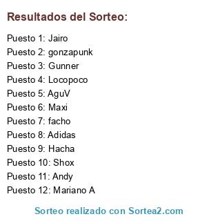 Lista de participantes: Locopoco, Jairo, Shox, Andy, facho, Maxi, Hacha, Mariano A, Gunner, AguV, Adidas, gonzapunk.