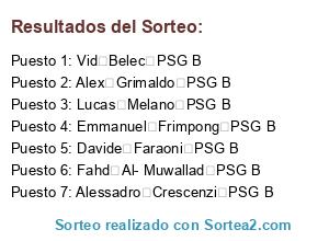 Lista de participantes: Vid Belec PSG B, Alessio Cragno PSG B, Ryan Mason PSG B, Jonathan Williams PSG B, Federico Viviani PSG B, Centurión PSG B, Emmanuel Frimpong PSG B, Alex Grimaldo PSG B, Davide Faraoni PSG B, Michel Macedo PSG B, Alessadro Crescenzi PSG B, Fahd Al- Muwallad PSG B, Willy Boly PSG B, Michy Batshuayi PSG B, Jean Marie Dongou PSG B, Lucas Melano PSG B, Angel Correa PSG B, Sercam Yildirim PSG B, Richmond Boakye PSG B, Mario Gaspar PSG B.